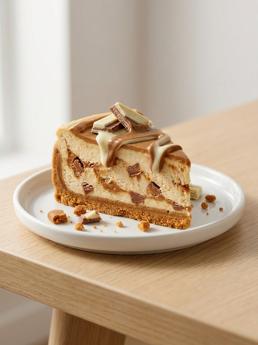 Len cheesecake med mjölk- och vit choklad, toppad med krispiga bitar av kitkat… krämig möter crunch på bästa sätt, svårt att sluta.