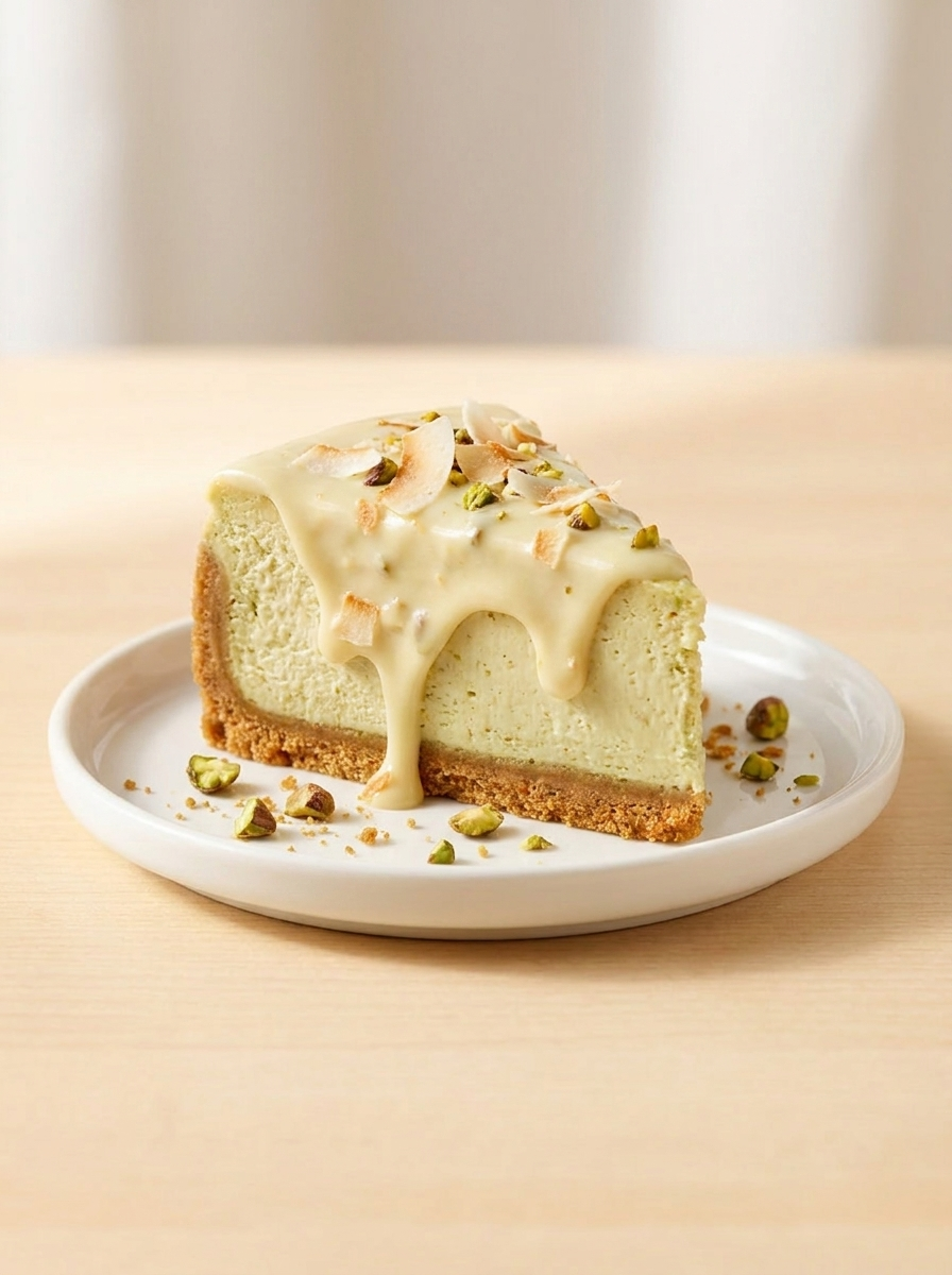 Krämig pistage, söt vit choklad och en hint av kokos som rundar av allt… mjuk, nötig och svårt att bara ta en tugga.